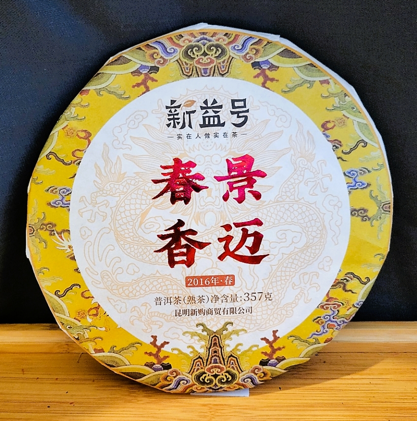 2016, vysoce kvalitní, tmavý puerh z Yunnanu u unikátní zahrady Jingmai Kunming. Tmavě rudohnědý nálev s vyzrálou, velmi plnou mléčnou chutí s jahodovým dozvukem. Lehce nahořklý, natrpklý. Vhodný k pití ihned. Doporučuji archivovat.