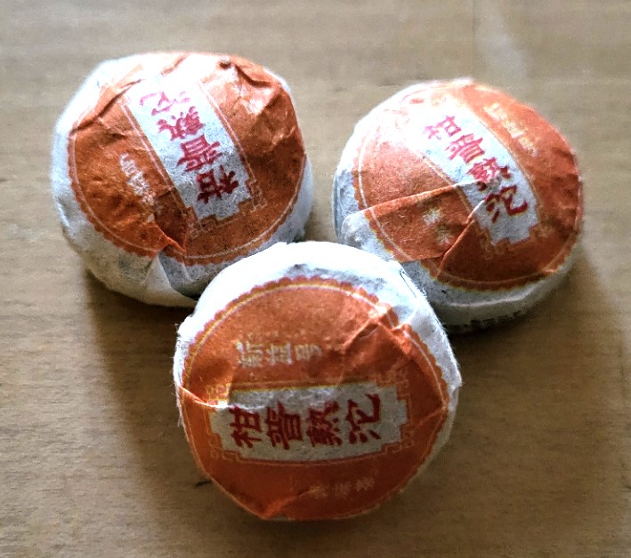 2017, tmavý puerh výborné kvality lisovaný do tvaru mini tuocha s přídavkem kousků kůry z divokého pomeranče, která dává nálevu příjemnou hořko - ovocnou příchuť. Tmavě rudohnědý nálev zemité, ale ovocné chuti typické pro tento Puerh. Vhodný k pití hned.