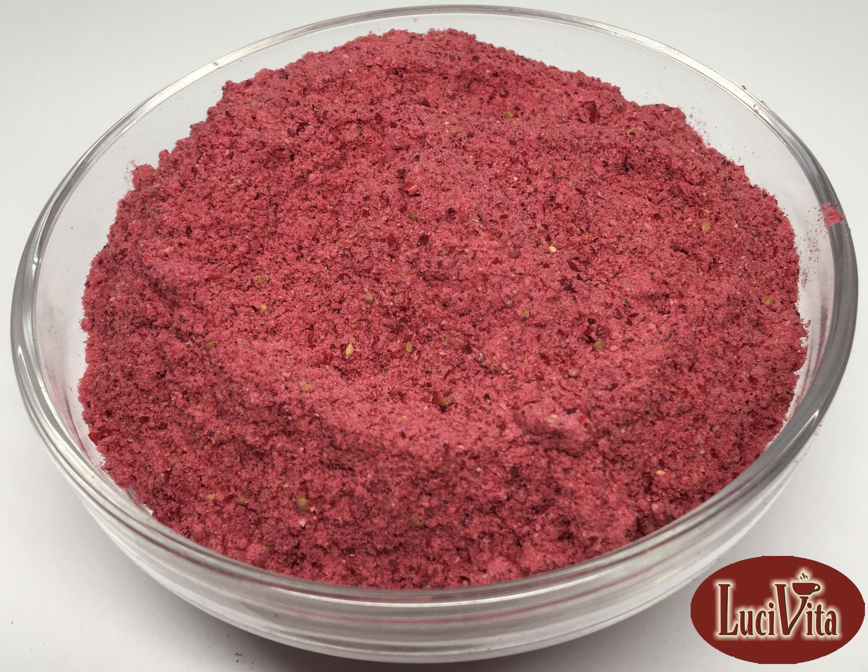 Brusinka prášek lyofilizát – 100% podíl ovoce, zpracováno do formy prášku, neobsahuje žádné jiné přidané složky. Prášek je vhodný pro kosmetické i potravinové užití. Díky procesu lyofilizace si ovocný prášek zachovává užitečné látky.