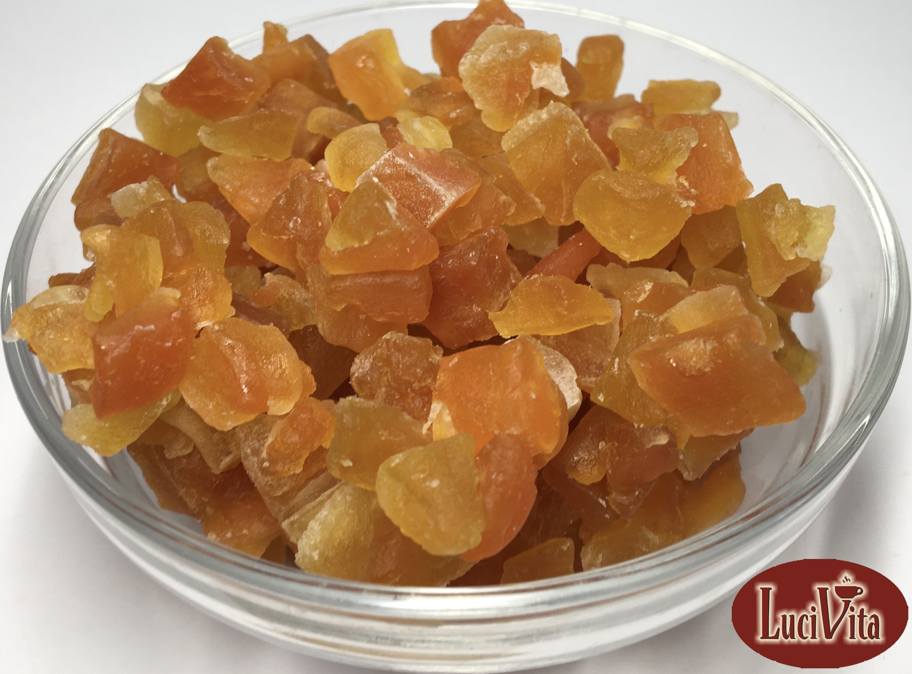 Cantaloupe kostky bez SO2 – kostky cantaloupe jsou měkké, voní a chutnají jako meloun. Neobsahují oxid siřičitý.