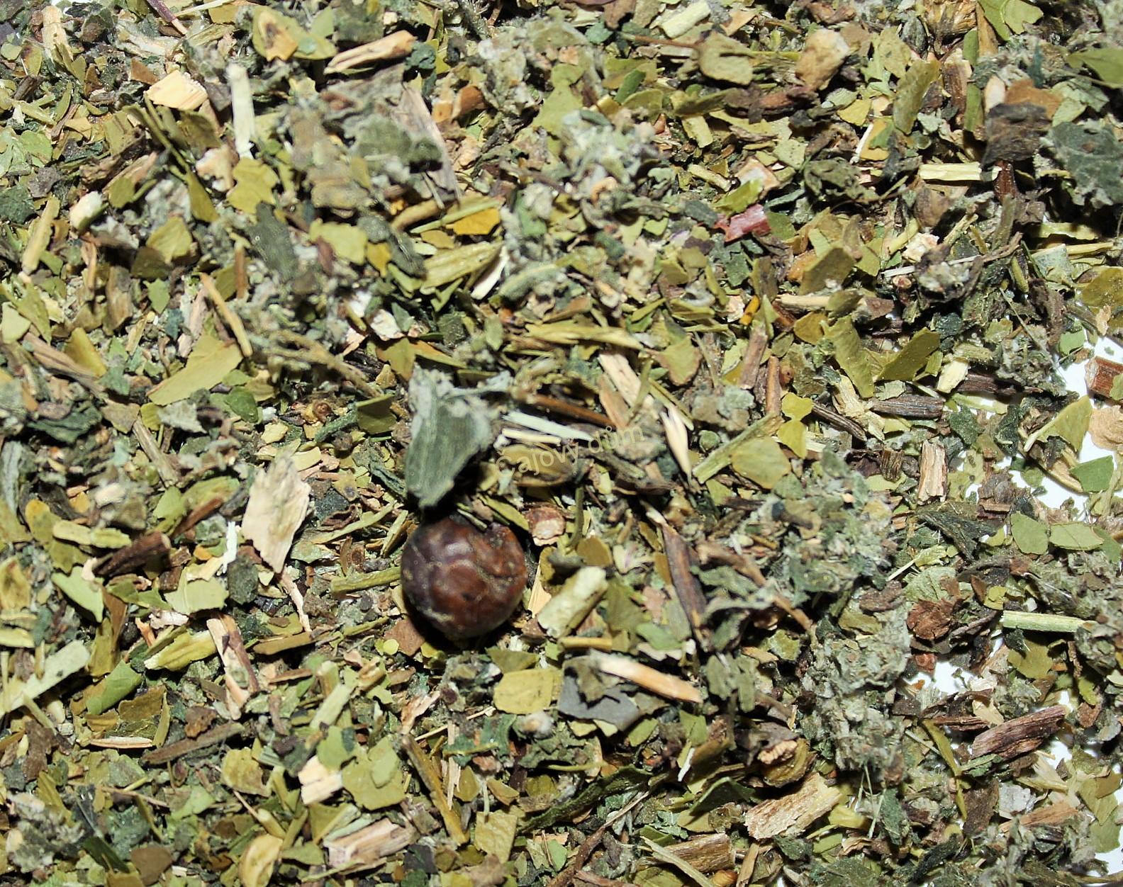 Složení: Maté zelené ( Maté folium), maliník list (Rubi idaei folium), máta nať (Menthae herba), kopřiva nať (Urticae herba), jalovec plod (Juniperi com. Fructus), pýr oddenek (Agropyri rhizoma)