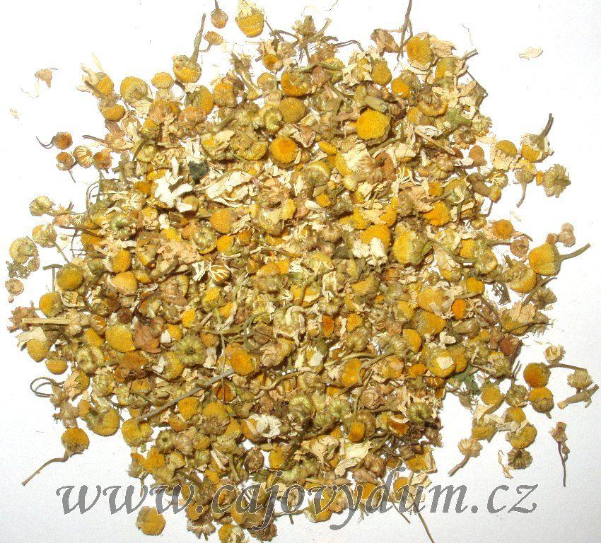 Sušené květy (úbory) heřmánku pravého (Matricaria chamomilla L. syn. Matricaria recutita L. nebo Chamomilla recutita (L.)Rausch.).