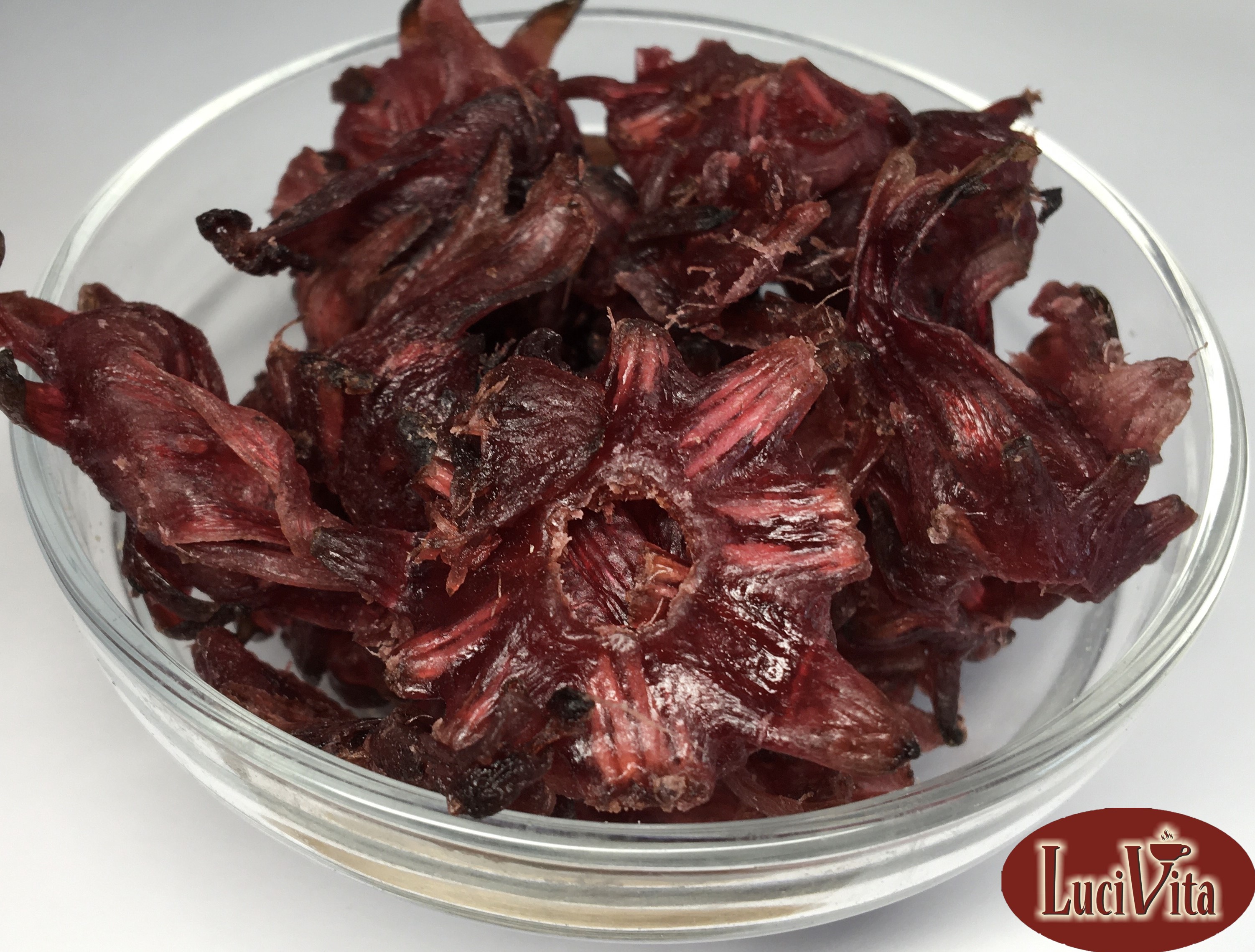 Ibišek – kandované květy ibišku jsou sladko-kyselé, příjemně voní a mají výraznou červenou barvu.