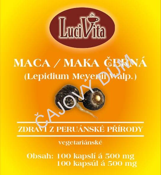 Maca černá je specielní, divoký druh Macy - je vysokohorská rostlina, druh řeřichy z peruánských And, jejíž hlízu používaly již preinkaické kultury jako běžnou součást lidské potravy a oblíbenou píci pro zvířata.. Pro svůj obsah vitamínů, minerálů a dalších látek příznivě působí na lidský organizmus a to zejména při podpoře fyzického a duševního zdraví, vytrvalosti a vitality. Také příznivě působí na plodnost, sexualitu, vhodná je také při menopauze, protože je zdrojem fytoestrogenů. Ne nadarmo je označována jako "peruánský ženšen".