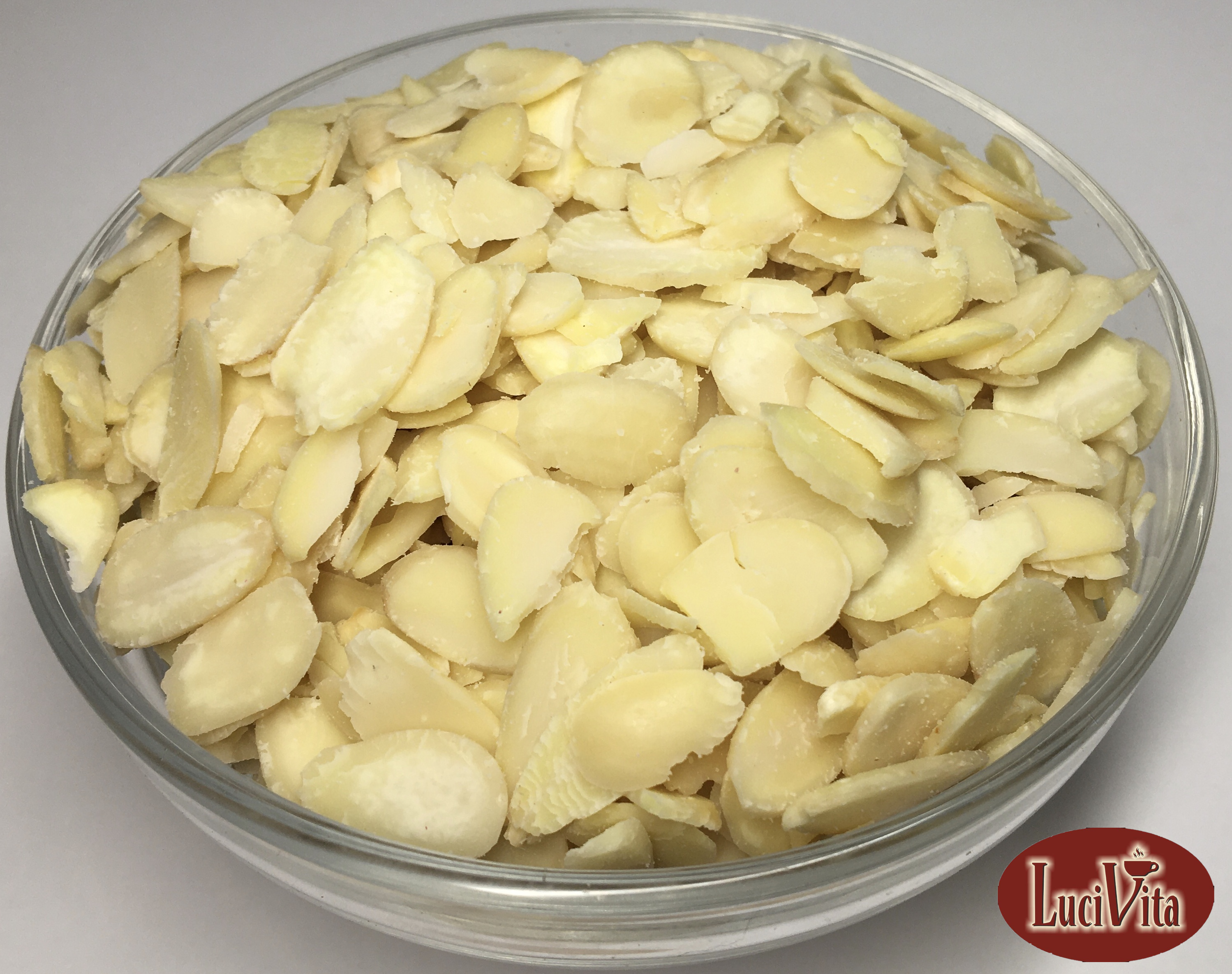 Mandle lupínky/plátky obashují zdarvé tuky a množstvích prospěšných živin rozpustných v tucích.