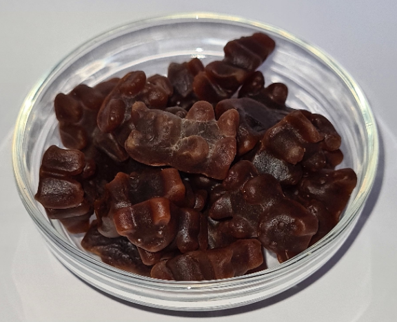 Složení: cukr, glukózový sirup, želatina, voda, koncentrovaná šťáva z bílých hroznů, kyselina citrónová; barvivo (karamelizovaný cukrový sirup), aromata, extrakt z bílého čaje 1%, přírodní ovocné sladidlo, koncentrát jablečné šťávy, koncentrovaná meruňková šťáva, koncentrovaná hrušková šťáva, karnaubský vosk.