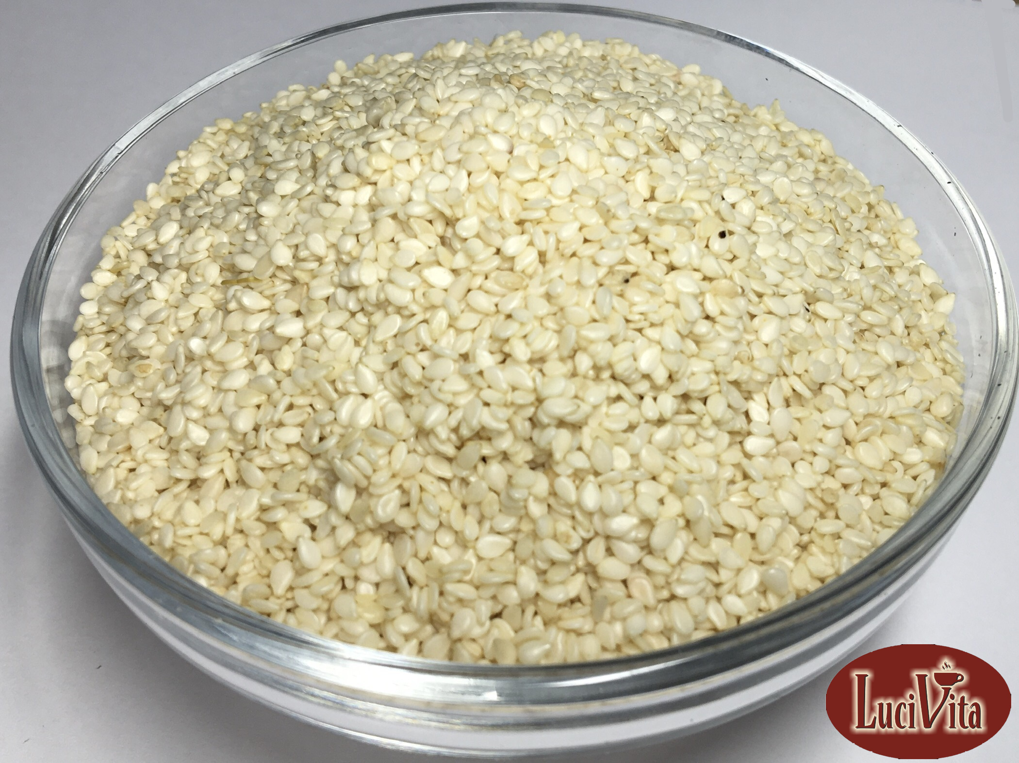 Sezamové semínko bílé (loupané) – se nachází v tobolkách sezamu indického, má jemnější chuť než sezam černý.
