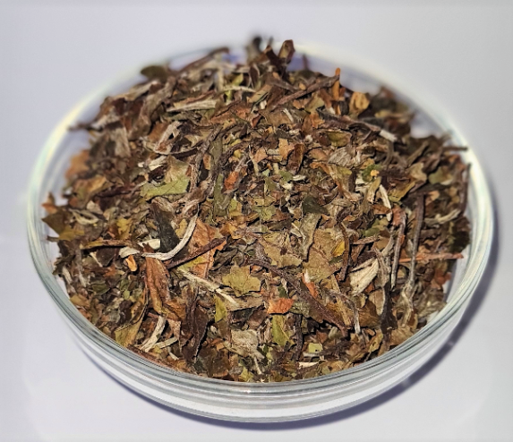 Směs světle a tmavě zelených až hnědých celistvých, nesvinutých listů, s menším podílem ochmýřených tipsů.