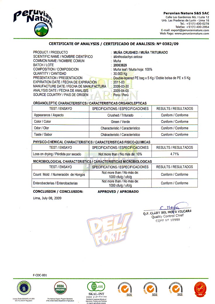 Na základě nařízení Evropského parlamentu a Rady evropského společenství č. 1924/2006 nelze u tohoto produktu uvádět žádná Radou neschválená výživová a zdravotní tvrzení. Seznam Radou schválených tvrzení ve vztahu k bylinám není doposud hotov a zřejmě se toho jestě dlouho nedočkáme.