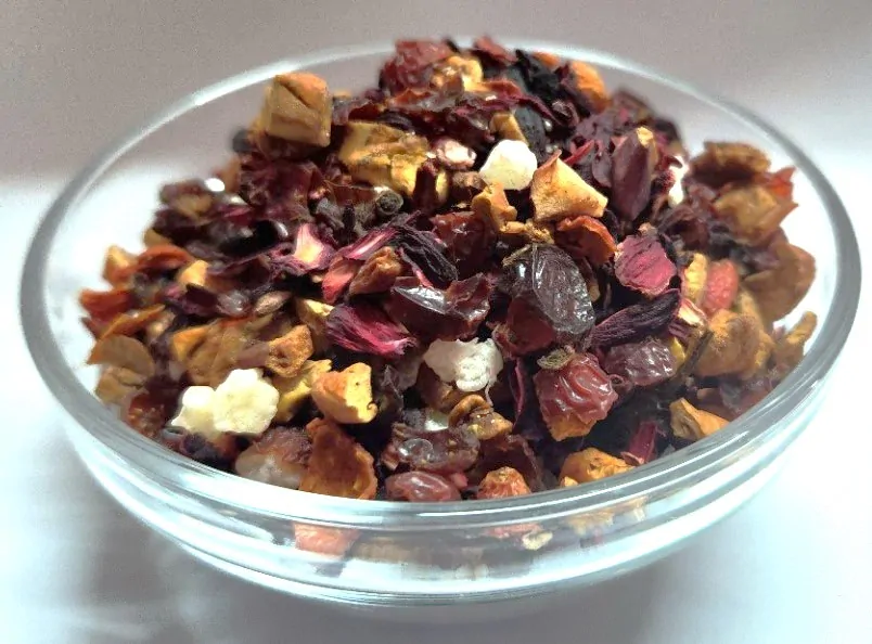 Složení: šípek, květy ibišku, kousky jablka a kokosu, kandovaný ananas.